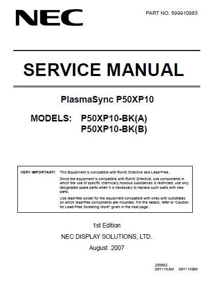 Download nec p50xp10-bk manual Kindle Deals PDF